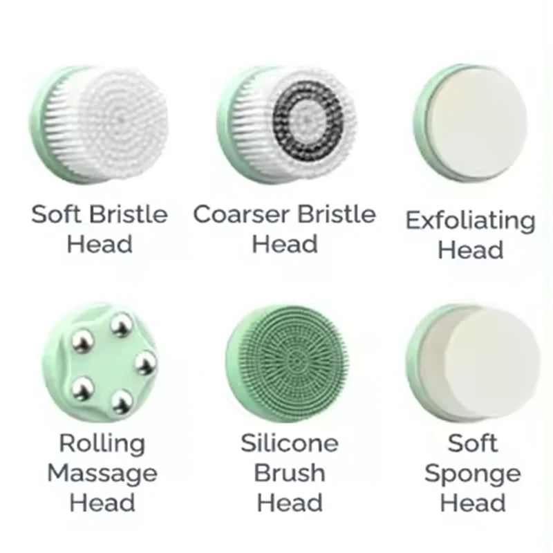 🔄 6 Interchangeable Brush Heads – Includes soft silicone brushes, exfoliating brushes, and massage heads for a full skincare routine.